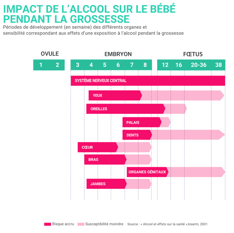 - Aucune quantité d’alcool n’est sûre : même de petites doses peuvent avoir un impact et cela peut varier selon la sensibilité de chaque mère et de chaque bébé.